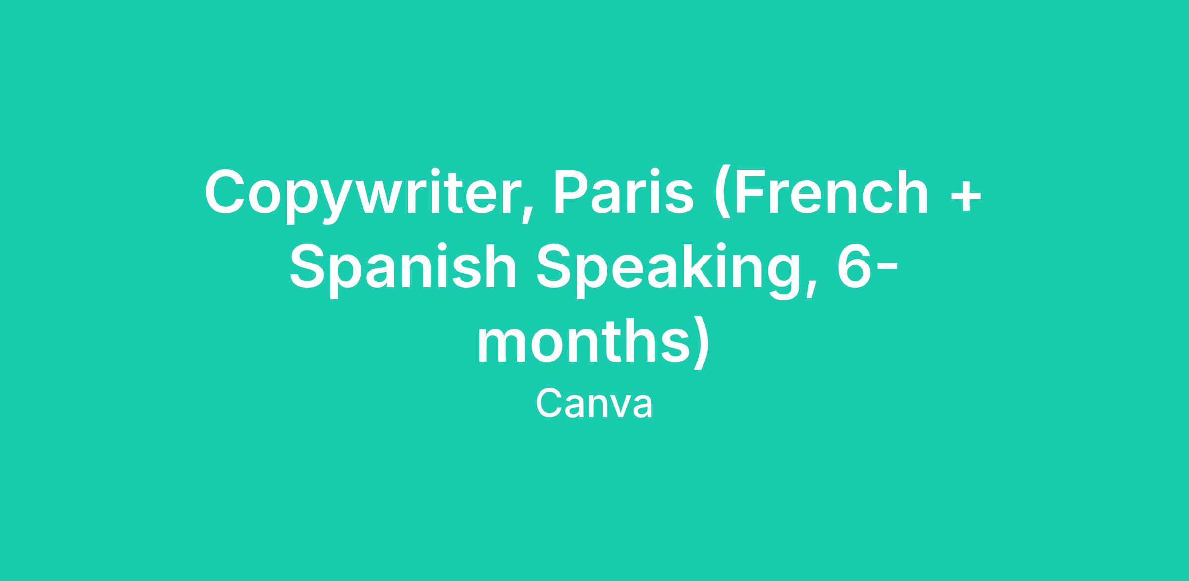 As a Copywriter, you’ll craft clear, compelling, and locally relevant content for performance marketing campaigns, Meta ad creatives, high-impact partnerships and campaigns. You'll work on evergreen initiatives to ensure a seamless flow of messaging between markets. Please note, this role requires fluency in French & Spanish, with professional level English. Collaborating closely with designers and marketers, you’ll help shape Canva’s voice in Europe and bring creative ideas to life.