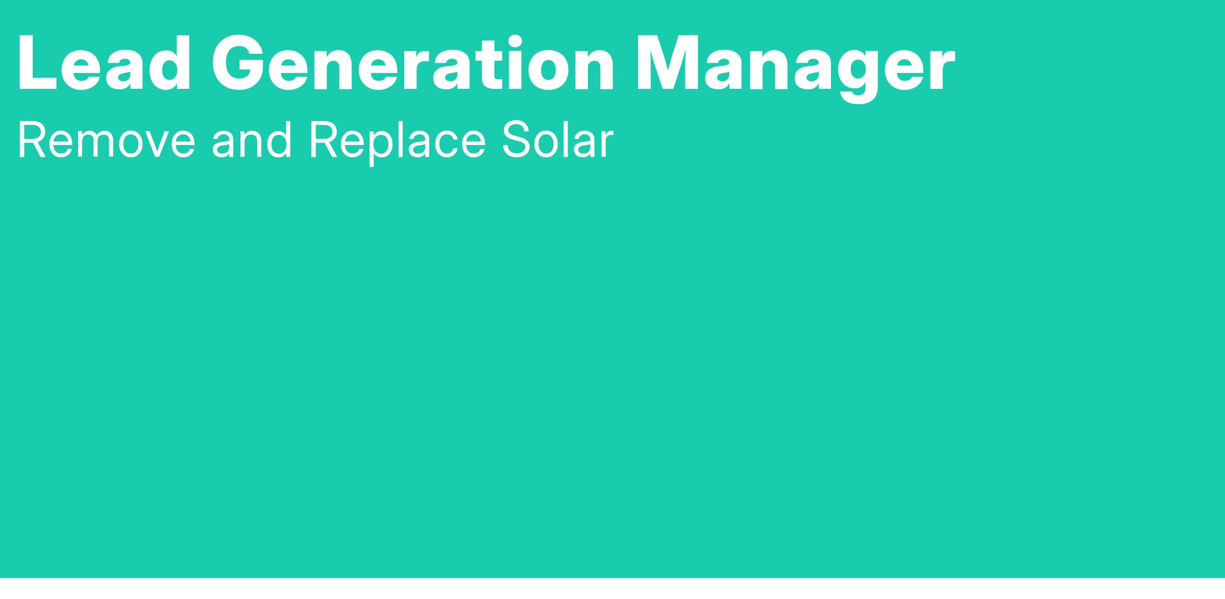 Remove and Replace Solar has an incredible opportunity for a highly ambitious and goal-driven person to reach greater levels of success as a full-time Lead Generation Manager! We're looking for a confident and outgoing leader to guide a talented team in delivering sustainable solutions to homeowners in Denver, CO.
