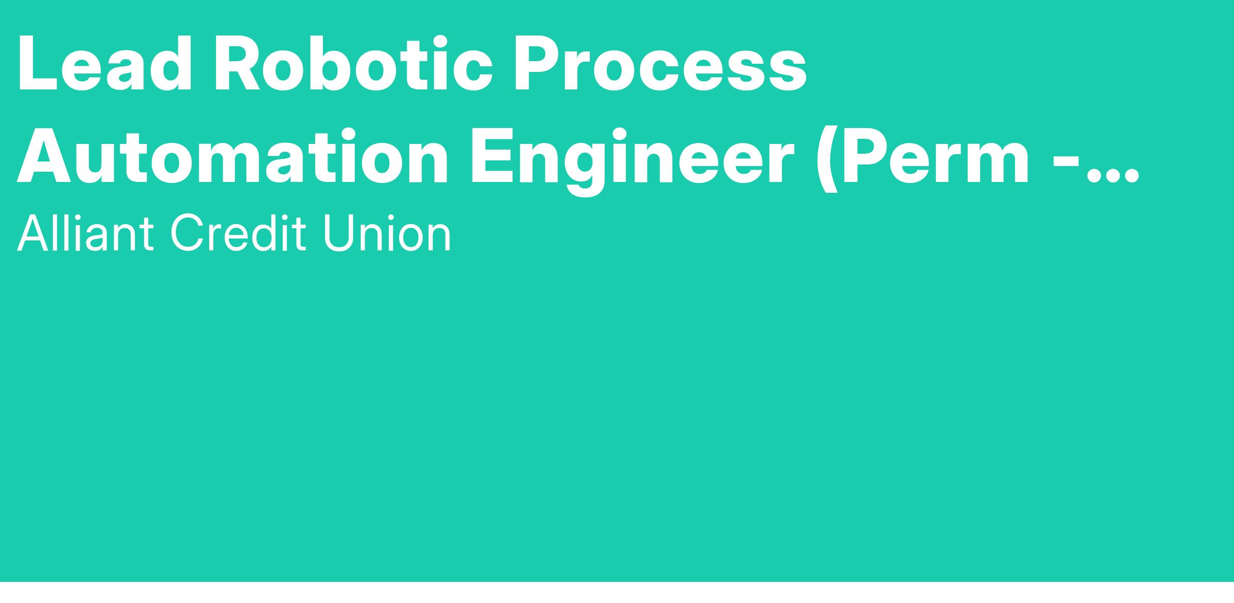 Lead Robotic Process Automation Engineer (Perm - Hybrid at our Chicago HQ near O'Hare Airport)