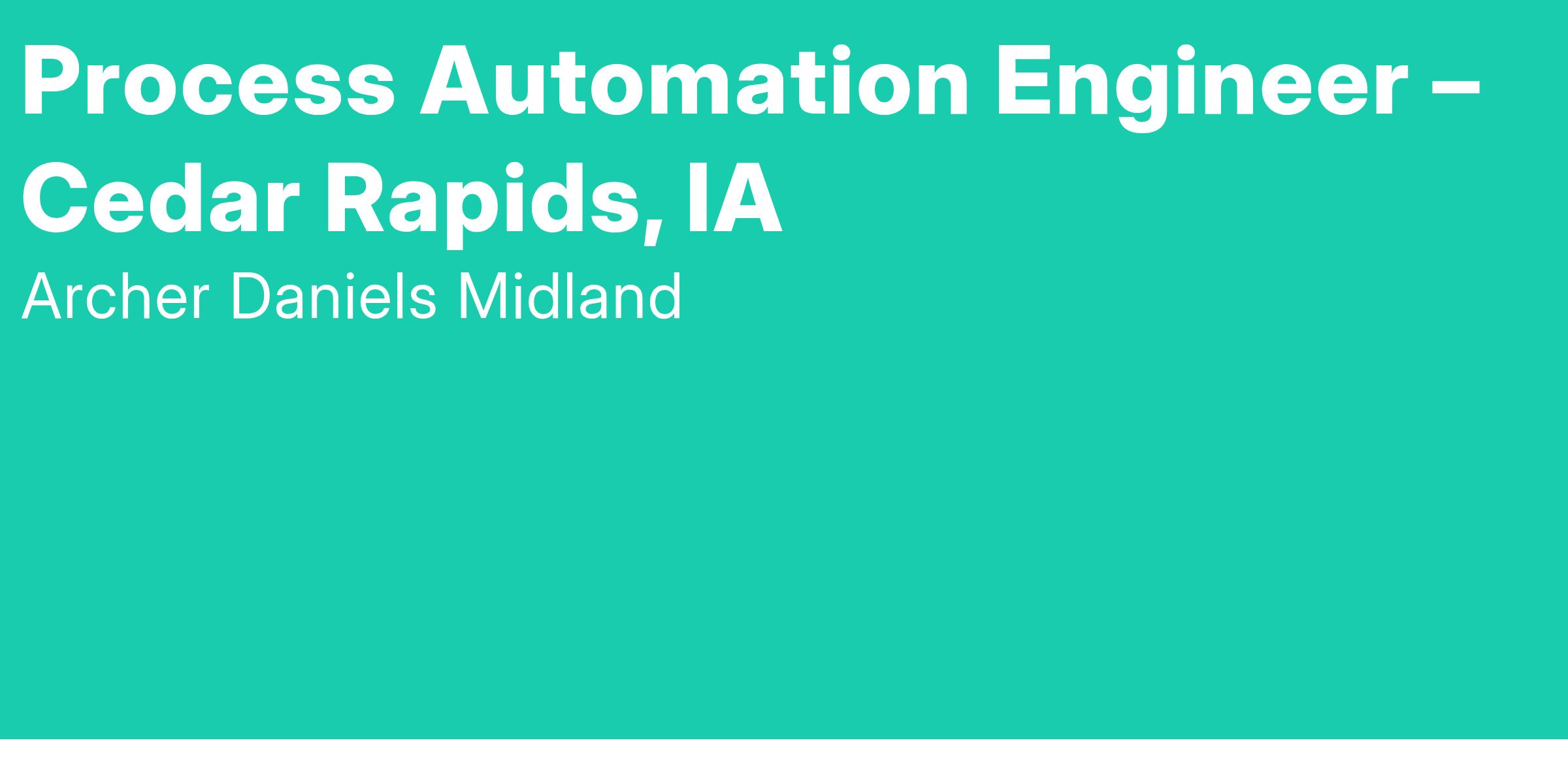 Process Automation Engineer – Cedar Rapids, IAThis is a full time, exempt position