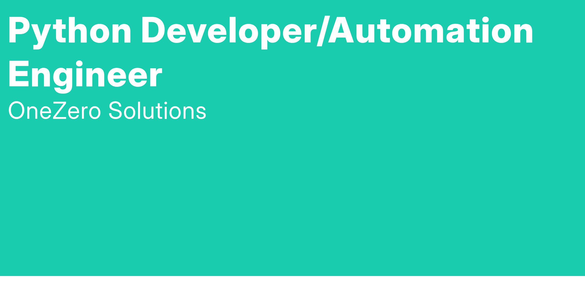 Title: Python Developer/Automation Engineer