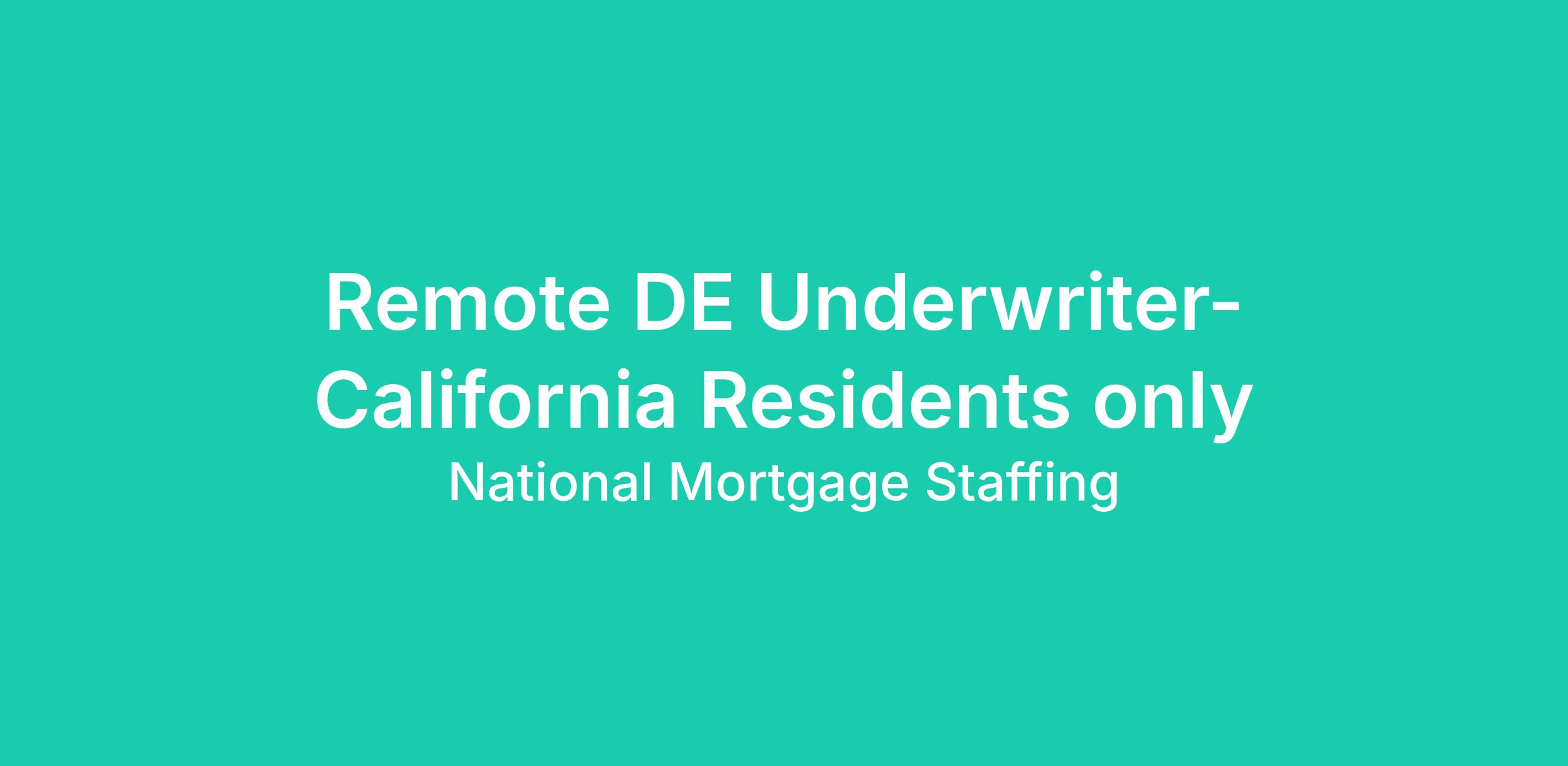 Remote DE Underwriter- California Residents only