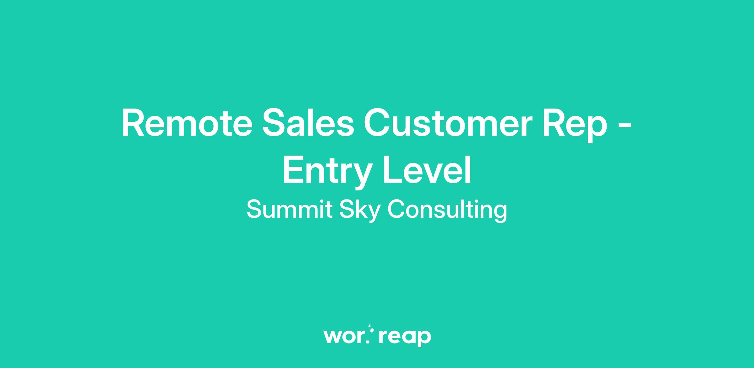 New York Applicants OnlySummit Sky Consulting is hiring motivated Sales Customer Representatives to join our remote team. While the position is primarily remote, you’ll sometimes meet with partners face-to-face, making it important that you’re New York based and comfortable with short trips.